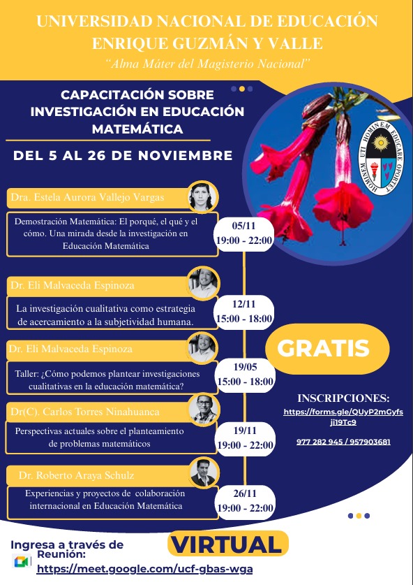 Capacitación docente – Inteligencia Artificial Aplicada Del 20 de octubre al 6 de noviembre Lunes y jueves – 7:00 p.m. a 10:00 p.m. Modalidad virtual (Google Meet): meet.google.com/jfd-iidp-ovw Ponente: Dr. Hugo David Calderón Vilca Organiza: Facultad de Ciencias – Escuela Leer más…