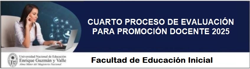 Cuarto Proceso Evaluación para Promoción Docente 2025 CRONOGRAMA CORRESPONDIENTE AL CUARTO PROCESO DE EVALUACIÓN PARA PROMOCIÓN DOCENTE CATEGORÍA DE ASOCIADO 2025 Ver Información RESULTADOS PROCESO DE PROMOCIÓN DOCENTE CATEGORÍA ASOCIADO – DEPARTAMENTO ACADÉMICO DE PEDAGOGÍA INFANTIL Ver Información