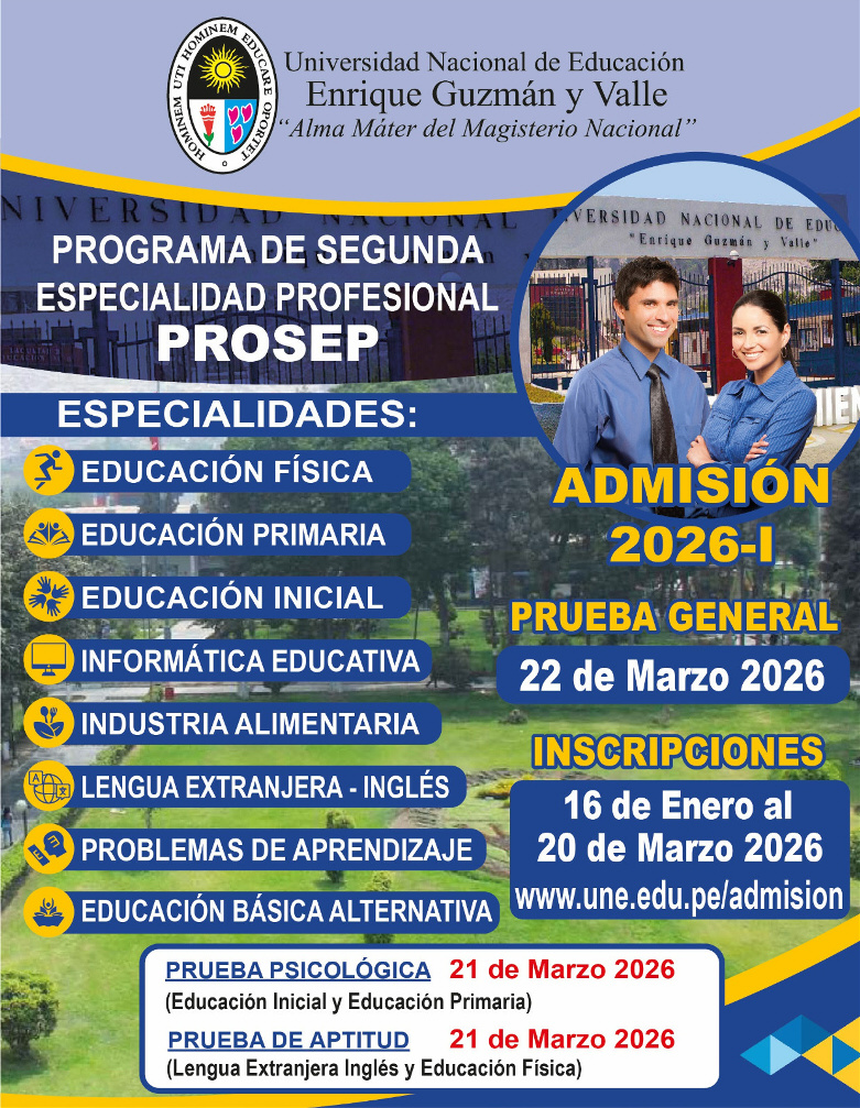 Ingresar a la Segunda Especialidad Profesional permite tener un conocimiento mucho más amplio en el campo de estudios. Nos motiva, asimismo, asumir nuevos retos y acceder a puestos laborales en un campo de acción más rico y grande. Por ello, el Programa de Segunda Especialidad Profesional (PROSEP) forma profesionales competentes en la docencia, que aportan a la sociedad, a la producción intelectual y responde así a las demandas sociales de nuestro país.