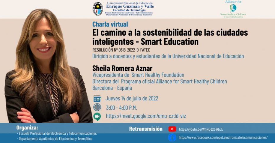 Con el objetivo de promover actividades académicas investigativas en la Universidad Nacional de Educación Enrique Guzmán y Valle, a través de la Facultad de Tecnología, la Escuela Profesional de Electrónica y Telecomunicaciones y el Departamento Académico de Electrónica y Telemática organizan una charla virtual titulada “El camino a la sostenibilidad de las ciudades inteligentes – Smart Education”.