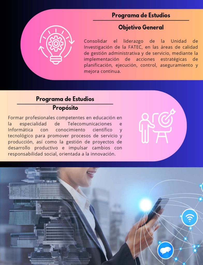 El Programa de Estudios de Educación con Especialidad de Telecomunicaciones e Informática ofrecen un amplio abanico para que, los futuros profesionales puedan desarrollarse y crecer, combinando sus habilidades técnicas, creativas y gerenciales: