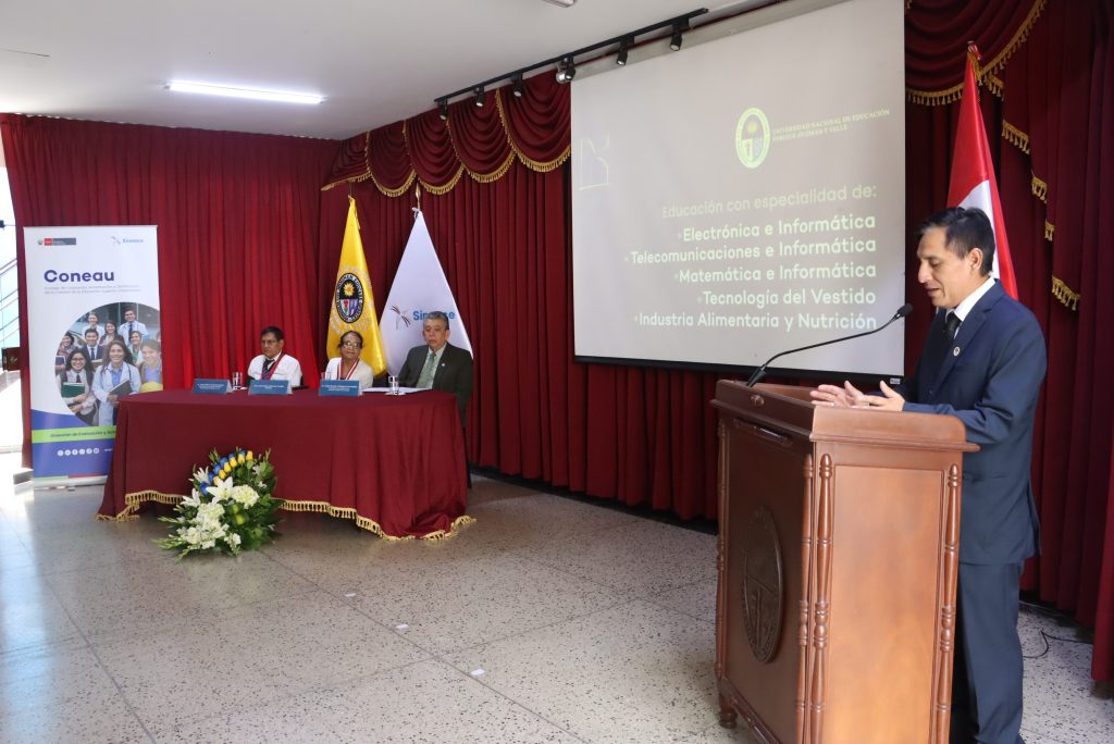 El reconocimiento oficial se realizó en una solemne ceremonia desarrollada en la sede de la Escuela de Posgrado de la UNE, con la participación de la rectora, Dra. Lida Asencios Trujillo; el presidente del Consejo Superior del Sineace y del Coneau, Dr. Ángel Velázquez Fernández; y el director de la Escuela de Posgrado, Dr. Ángel Cochachi Quispe.