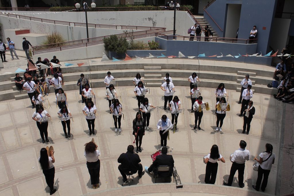Ceremonia de izamiento del pabellón nacional, en el frontis de la facultad.