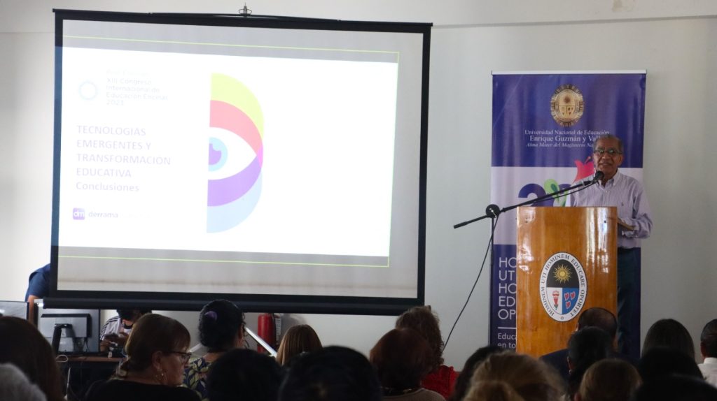 Asimismo, se llevó a cabo la charla del Profesor Hugo Díaz, quien presentó el tema Tecnologías emergentes y transformación educativa, a partir de las conclusiones del XIII Congreso Internacional de Educación Encinas 2023.