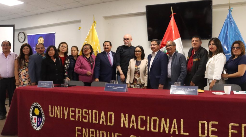 El evento, realizado en el auditorio de la Facultad de Pedagogía y Cultura Física, contó con la asistencia de la rectora de la UNE, Dra. Lida Asencios Trujillo, y el presidente de la Derrama Magisterial, Prof. Luis Espinoza Tarazona.