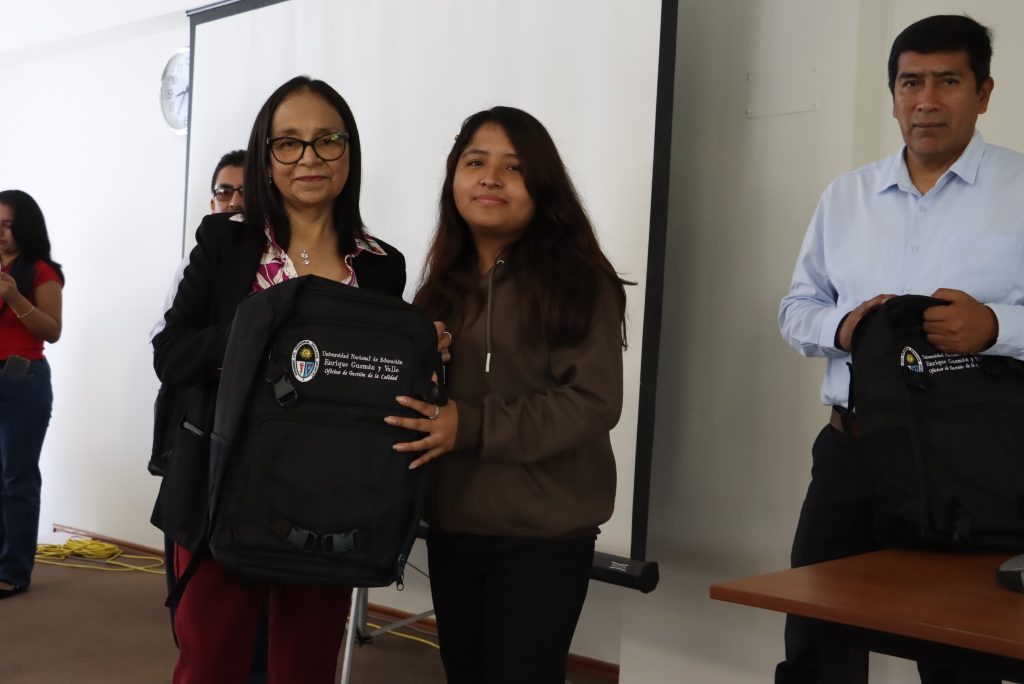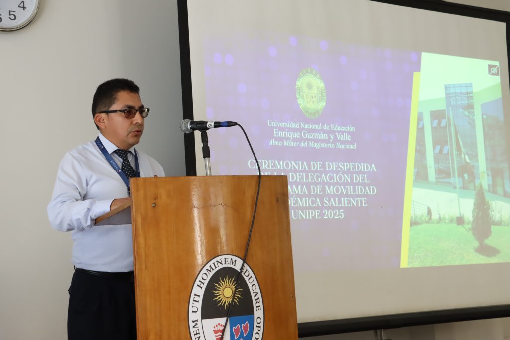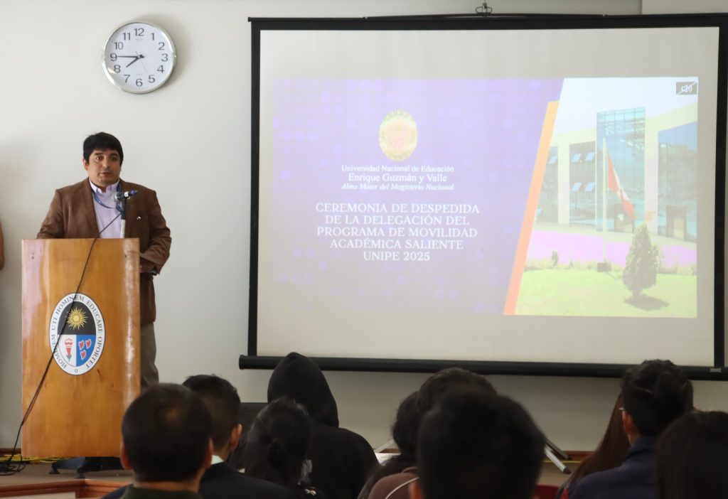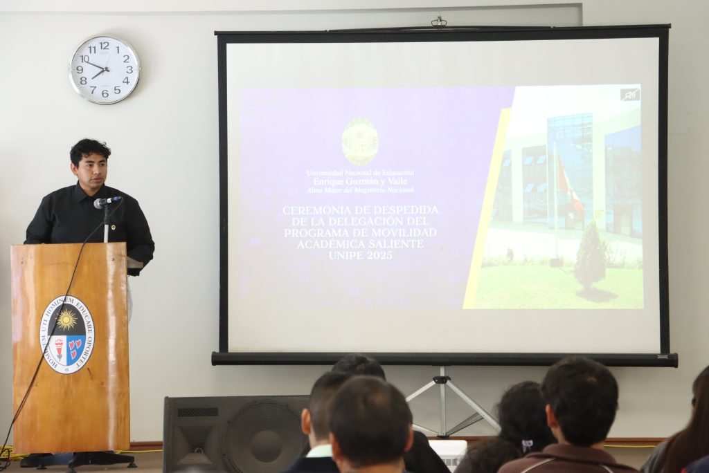 La ceremonia contó también con la presencia del director de la Oficina de Gestión de la Calidad, Mtro. Gustavo Vílchez Mendoza; los jefes de Recursos Humanos, Mag. Frank Mejía Martínez; y de Servicios Generales, Lic. Edwin Glicerio Gavilán Bellido; así como docentes y personal administrativo. Al cierre del acto, se hizo entrega de un presente institucional a los estudiantes que representarán con orgullo a la Universidad Nacional de Educación Enrique Guzmán y Valle en Argentina.