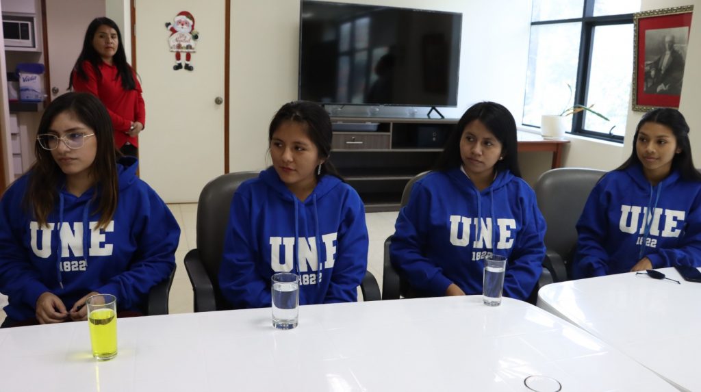 Previamente a su participación, los jóvenes cantuteños fueron recibidos por la rectora Dra. Lida Violeta Asencios Trujillo, junto al director de la Oficina de Cooperación Nacional e Internacional, Dr. Carlos Vargas Cairo, en el Salón del Rectorado del Nuevo Pabellón Administrativo.