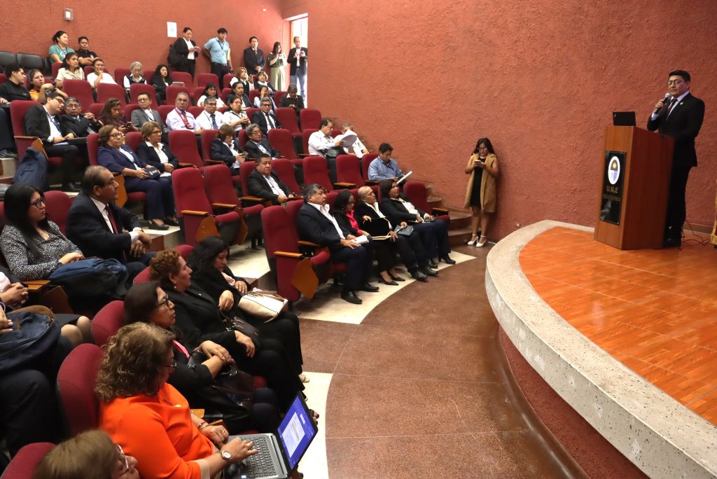 Posteriormente, el Mtro. Gustavo Vílchez realizó la presentación oficial de los presidentes, miembros y observadores del Sineace que integran las seis comisiones evaluadoras externas de cada programa de estudios encargadas de este proceso.